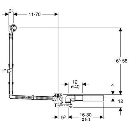 Слив-перелив для ванны Geberit, полуавтоматичнеский, длина 73 см, с декоративным комплектом: Глянцевый хром, d=40/50мм (150.525.21.6)