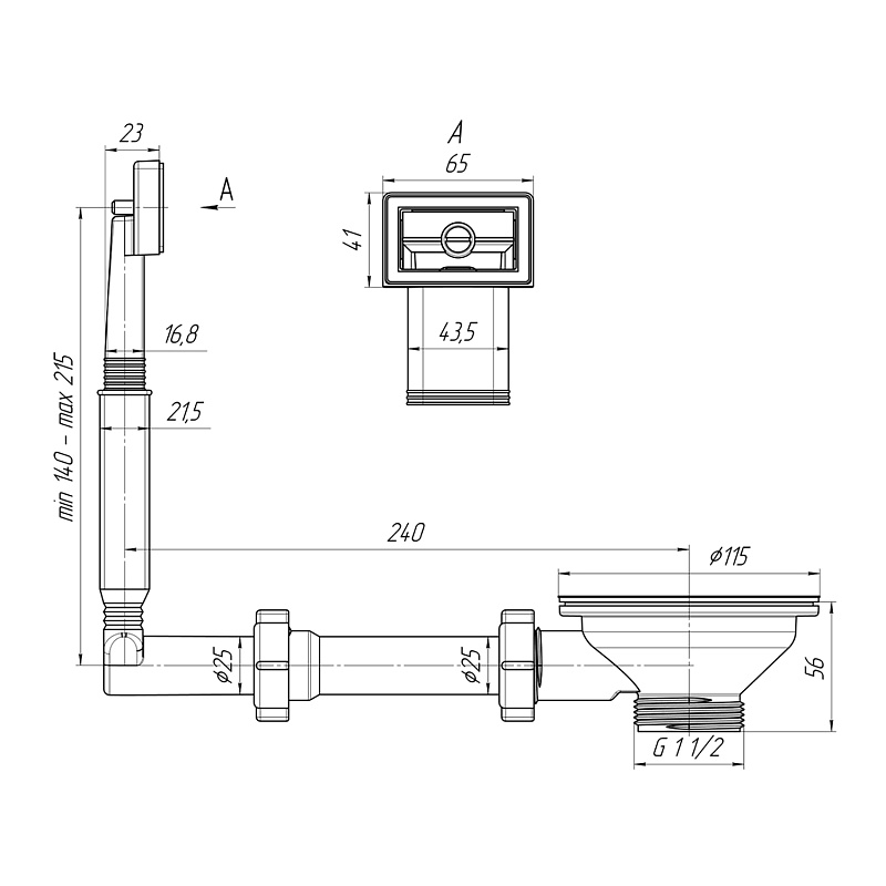 Выпуск с нержавеющей решеткой 115мм и жестким прямоугольным переливом. Корпус перелива оборудован универсальной прокладкой для круглых и прямоугольных моек из нержавеющей стали со сливным отверстием 90мм