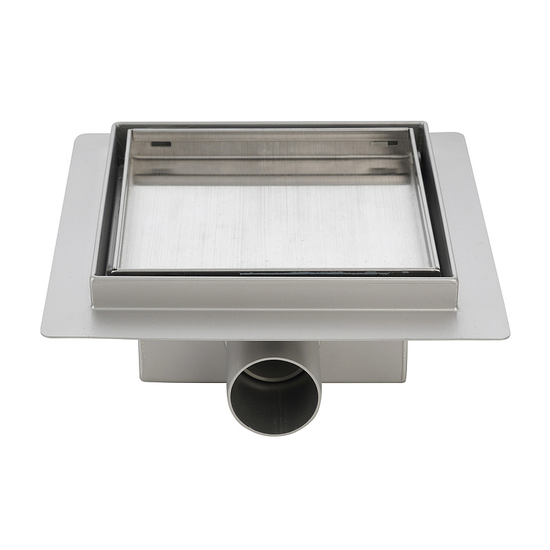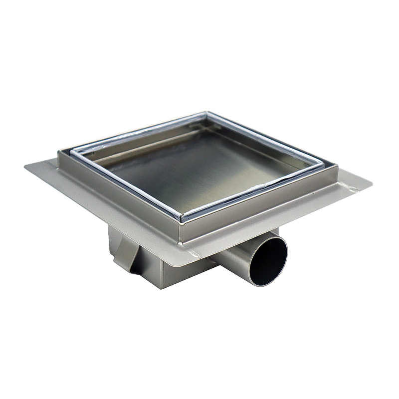Трап для душа AZARIO 150х150 цельнометаллический, решетка "под плитку", горизонтальный выпуск (AZZ1TILE150)