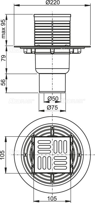 —Душевой трап Alcadrain 105х105/50/75 решетка из нержавеющей стали (APV201)