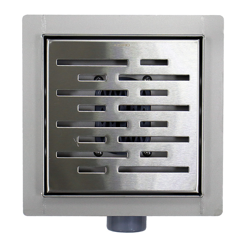 —Трап для душа AZARIO 150х150 металлический, поворотный сифон 360°, перфорированная решетка, горизонтальный выпуск (AZZ3150)