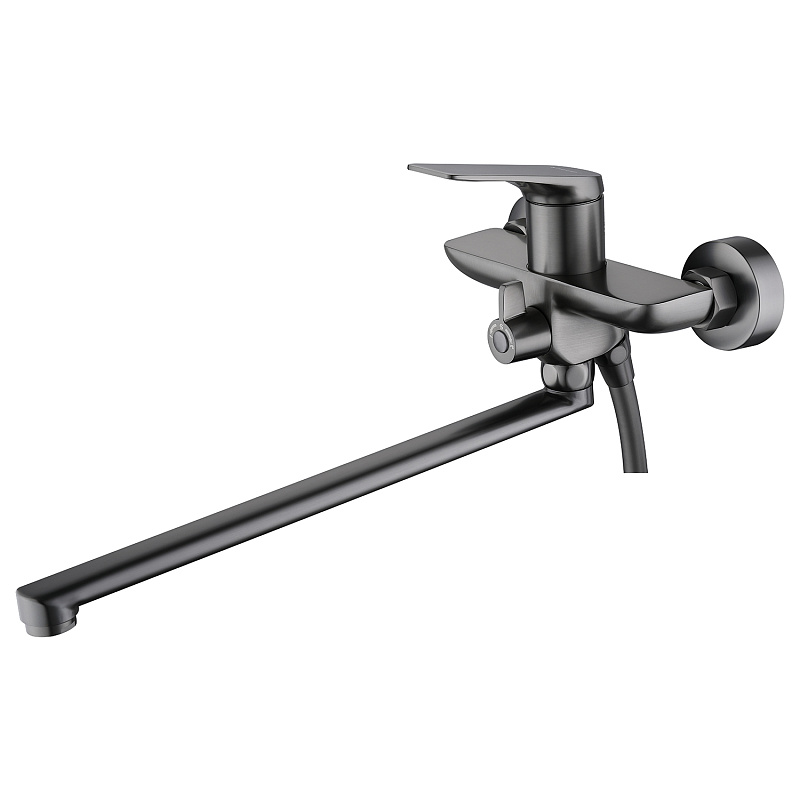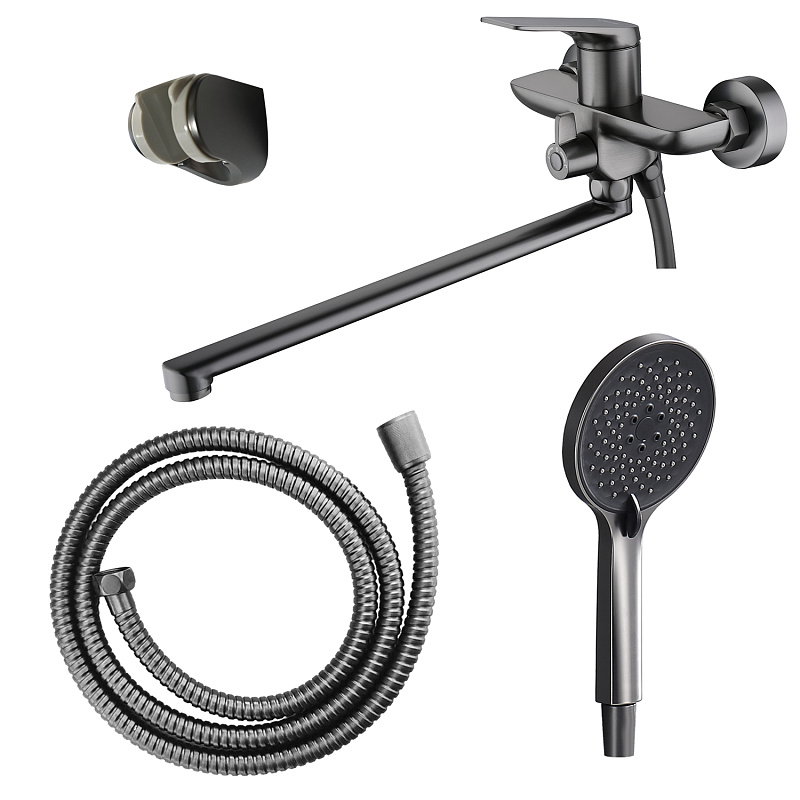 —Смеситель для ванны Azario Lursy керамический картридж, длинный излив, с ручным душем, шланг 150 см, графит (AZ-K1749GR)
