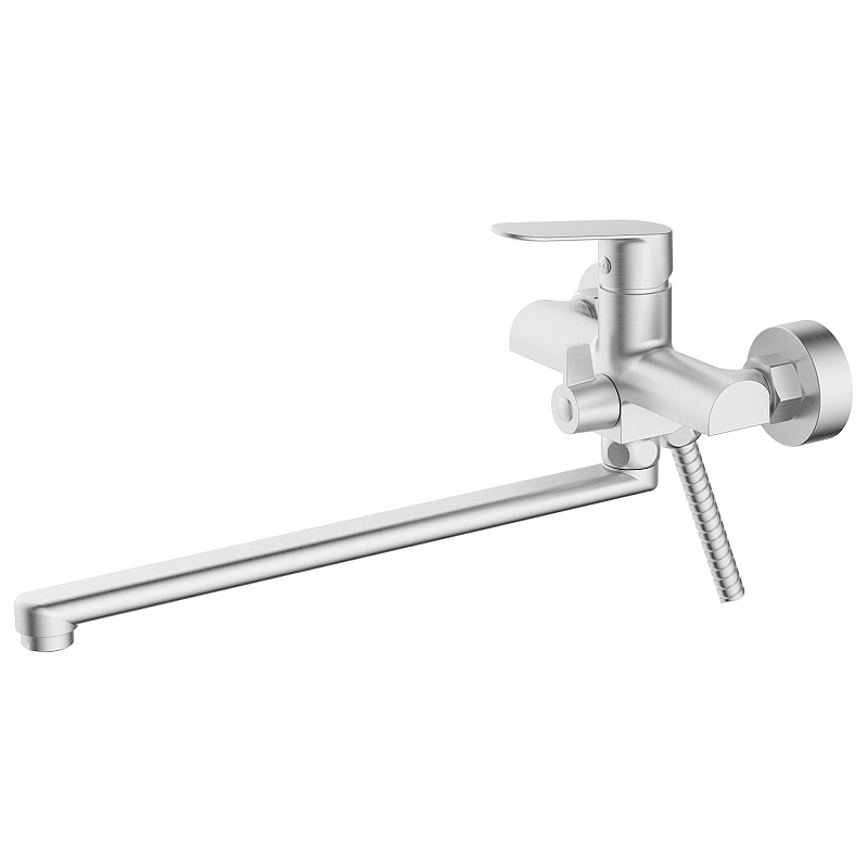 —Смеситель для ванны Azario Alanti керамический картридж, длинный излив, с ручным душем, шланг 150 см, сатин (AZ-K1732BN)