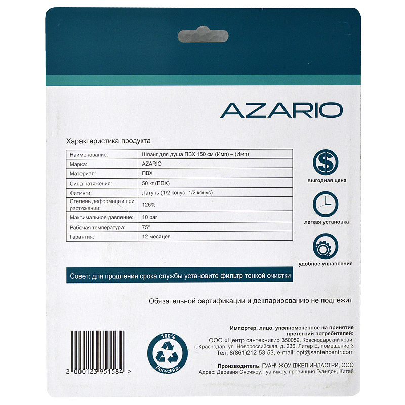 шланг Azario ПВХ 150_обр