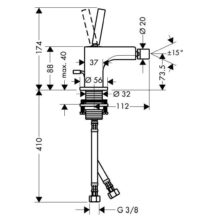Смеситель для биде Axor Citterio 90, однорычажный, со сливным гарнитуром, хром (39210000)