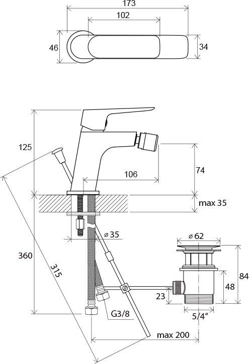- соединительные шланги: гибкий 400 мм, диаметр G3/8