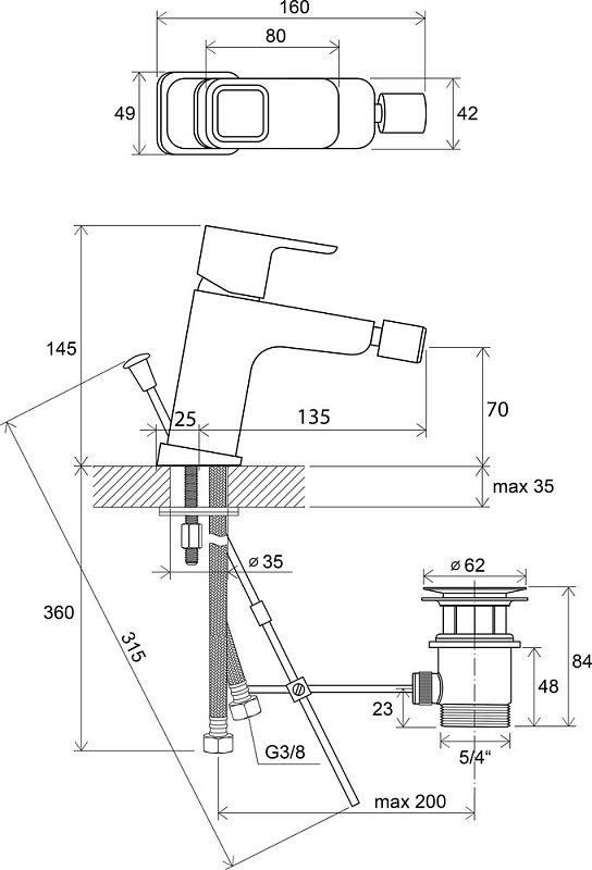 - соединительные шланги: гибкий 400 мм, диаметр G3/8