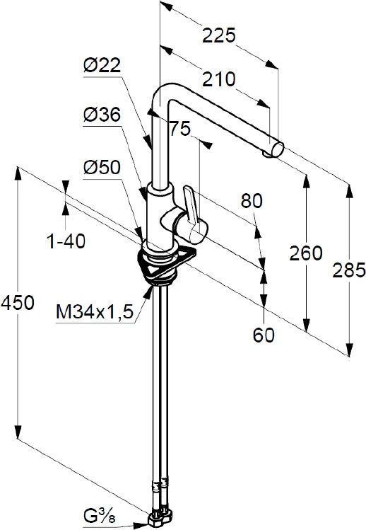 Длина излива: 21 см