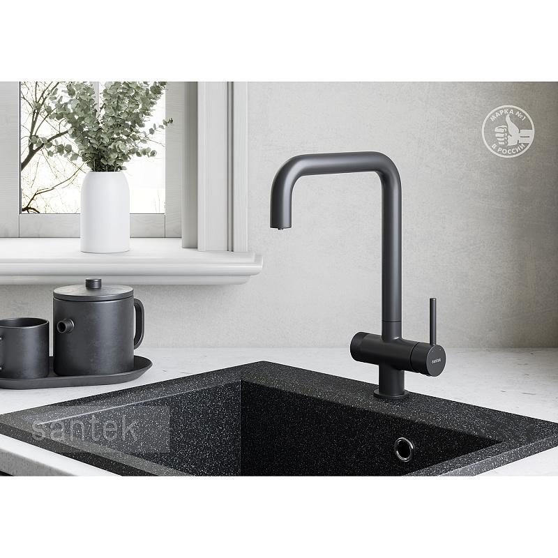 —Смеситель для кухни Santek Тесио с подключением к фильтру для воды, керамический картридж, черный матовый (WH5A43012N001)
