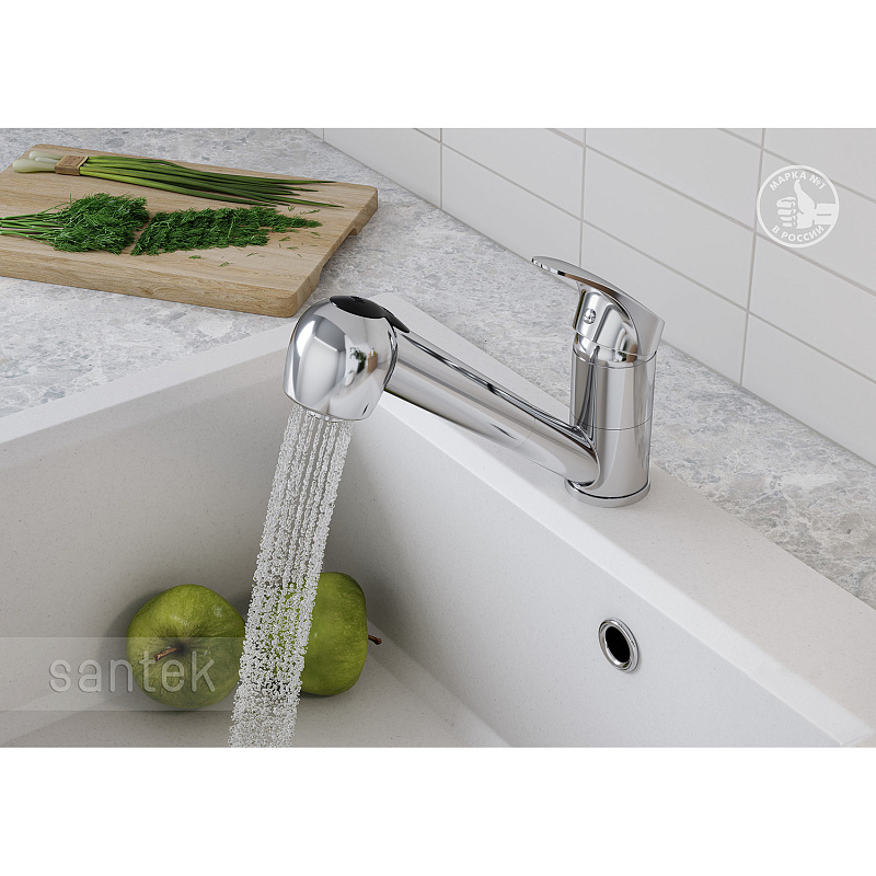—Смеситель для кухни Santek Мавис с выдвижным 2-режимным изливом, керамический картридж, хром (WH5A42011C001)