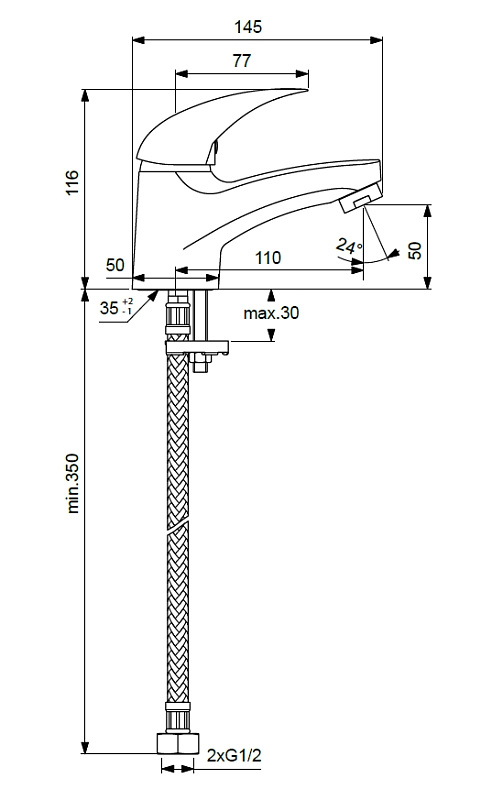 ORION Однорукоятковый смеситель для умывальника под 1 отверстие, система монтажа EASY-FIX (облегченный монтаж), гибкая подводка 400 мм, без донного клапана, керамический картридж 35 мм, аэратор Perlator