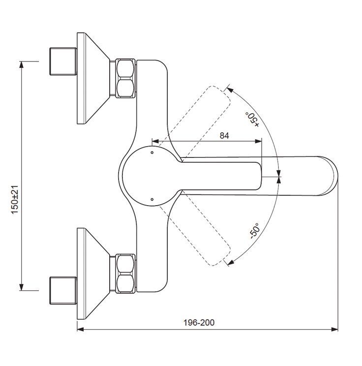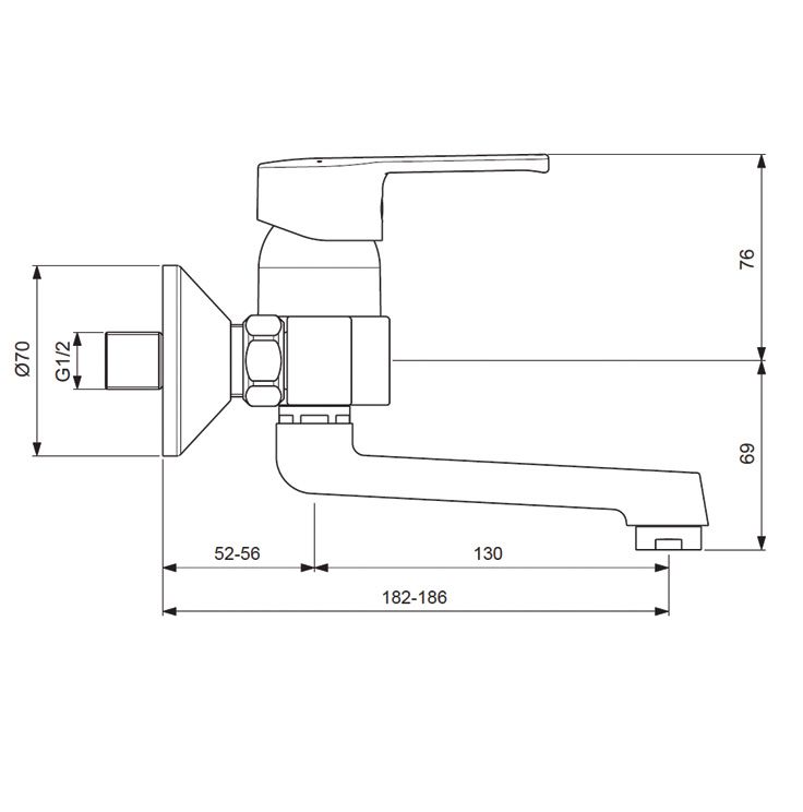 VIDIMA UNO Настенный смеситель для умывальника, монтаж на стандартных эксцентриках (в комплекте: эксцентрики, металлические отражатели, уплотнительные прокладки), литой поворотный излив130 мм, угол поворота 360º, аэратор Perlator, керамический картридж 35 мм, металлическая рукоятка с индикаторами горячей / холодной воды