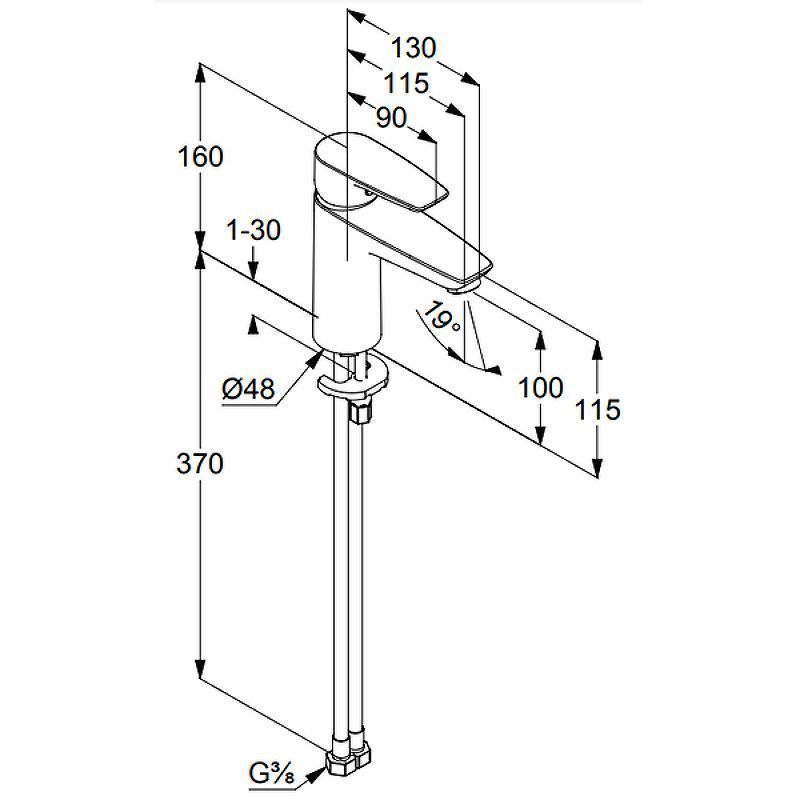 Стандарт подводки: гибкий G 3/8.