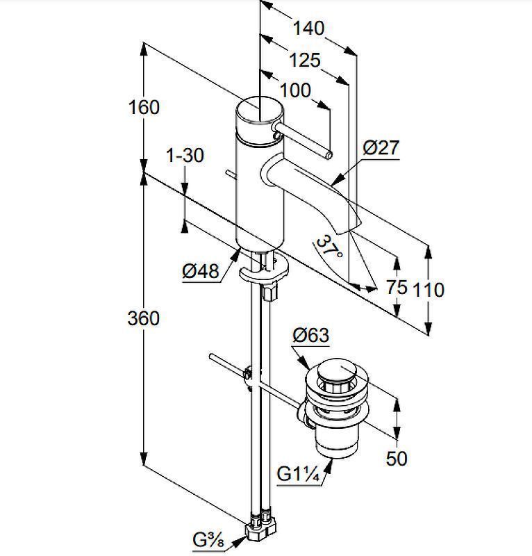 Смеситель для раковины Kludi Bozz 382660576 с донным клапаном.