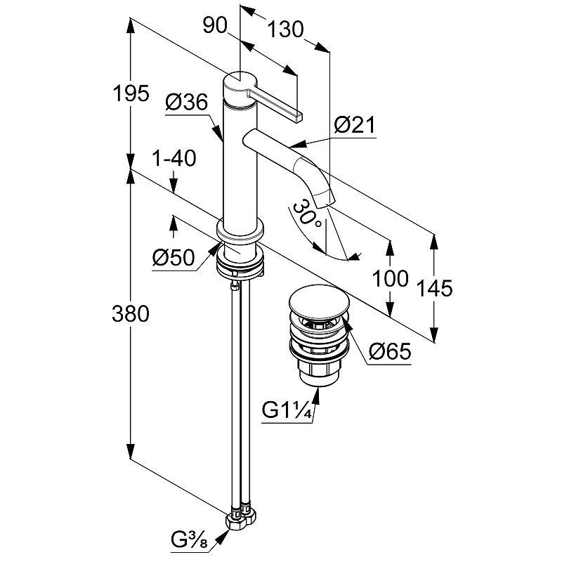 Донный клапан: G 1 1/4 push-open.