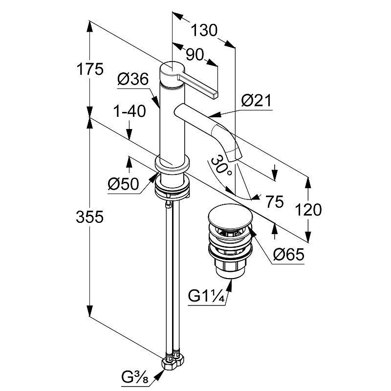 Донный клапан: G 1 1/4 push-open.