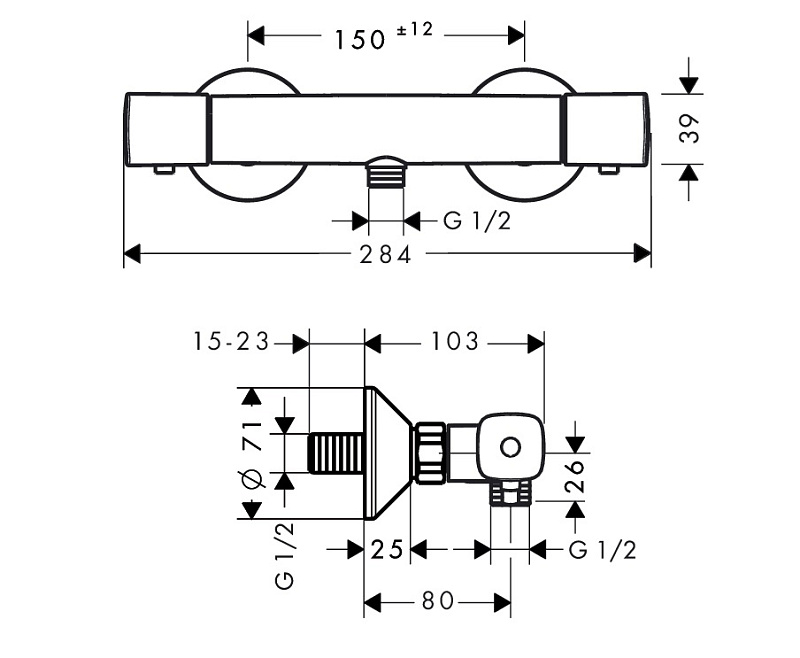 Штихмас (монтажный размер): 150±12 мм;