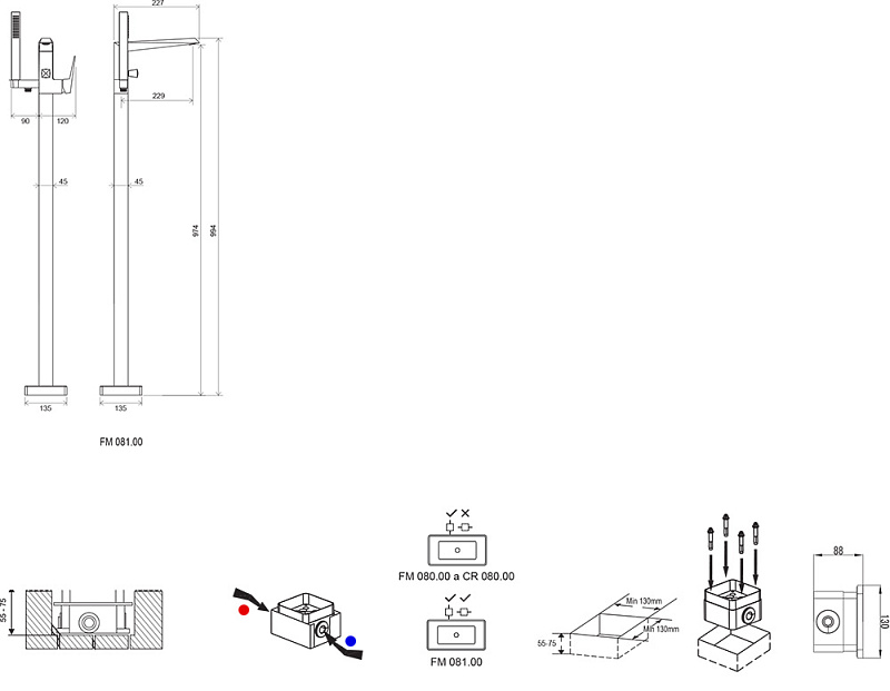 - исполнение: поставляется вместе с R-box - крепежным модулем к трубопроводу в полу