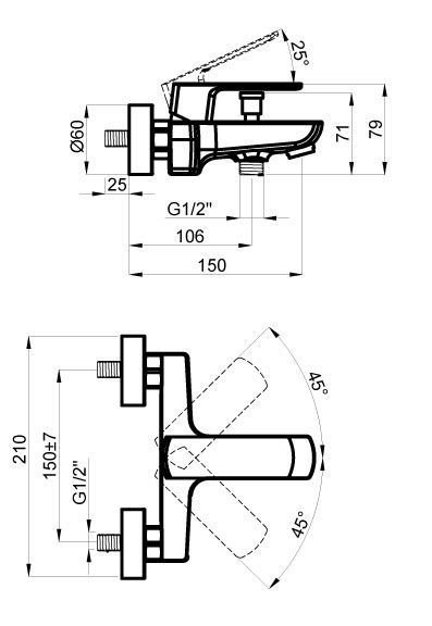 —Смеситель AZARIO ATRI для ванны с коротким изливом, хром (AZ-15960501)
