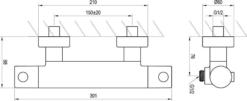 —Смеситель для душа Ravak Puri PU 033.00/150 с термостатом Хром (X070116)