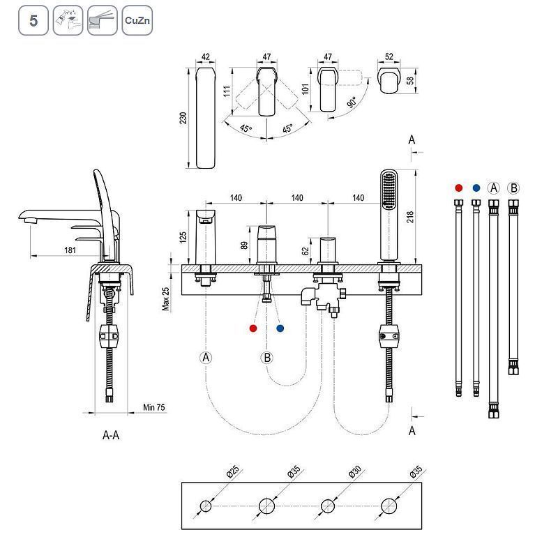 Смеситель на борт ванны Ravak Flat FL 026.20 X070176 с душевым гарнитуром.