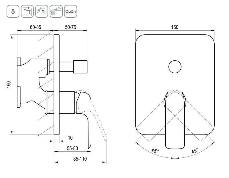—Смеситель для душа Ravak Flat FL 065.20 внешняя часть, керамический картридж, черный матовый (X070179)