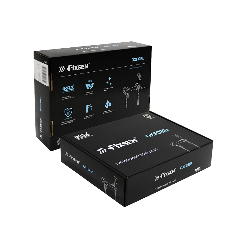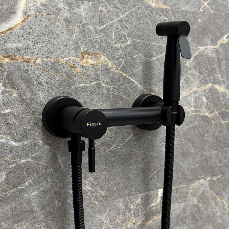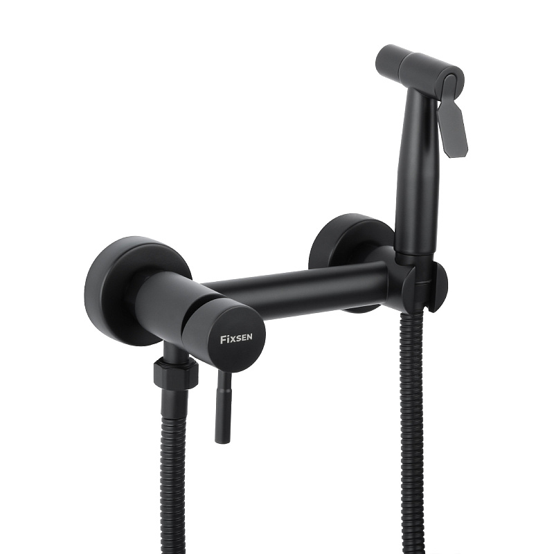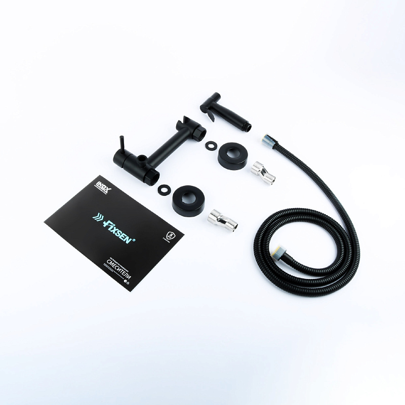 —Смеситель с гигиеническим душем Fixen OXFORD однорычажный, керамический картридж, черный (FX-9505B)