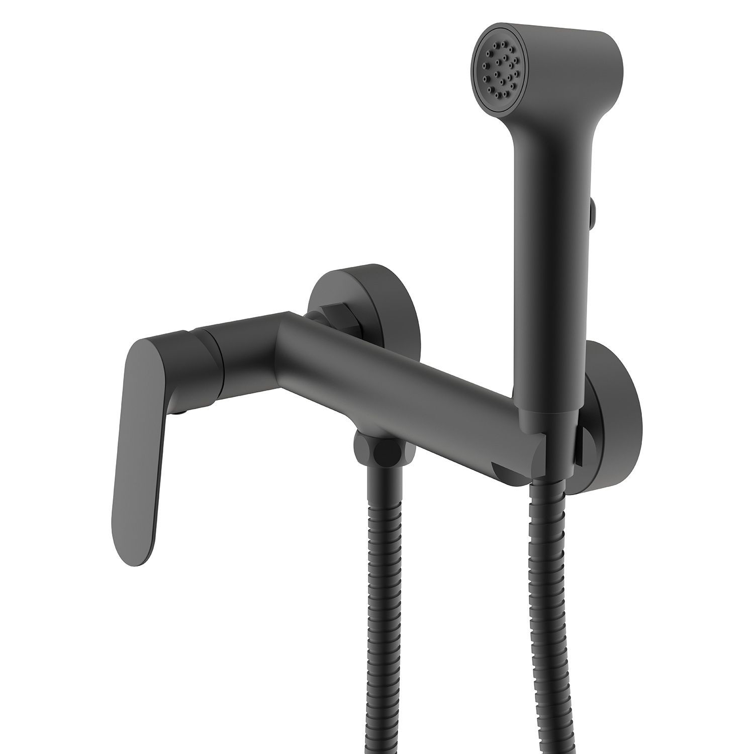 —Гигиенический душ Azario Alanti со смесителем, керамический картридж, однорычажный, шланг 150 см, черный матовый (AZ-K2532B)