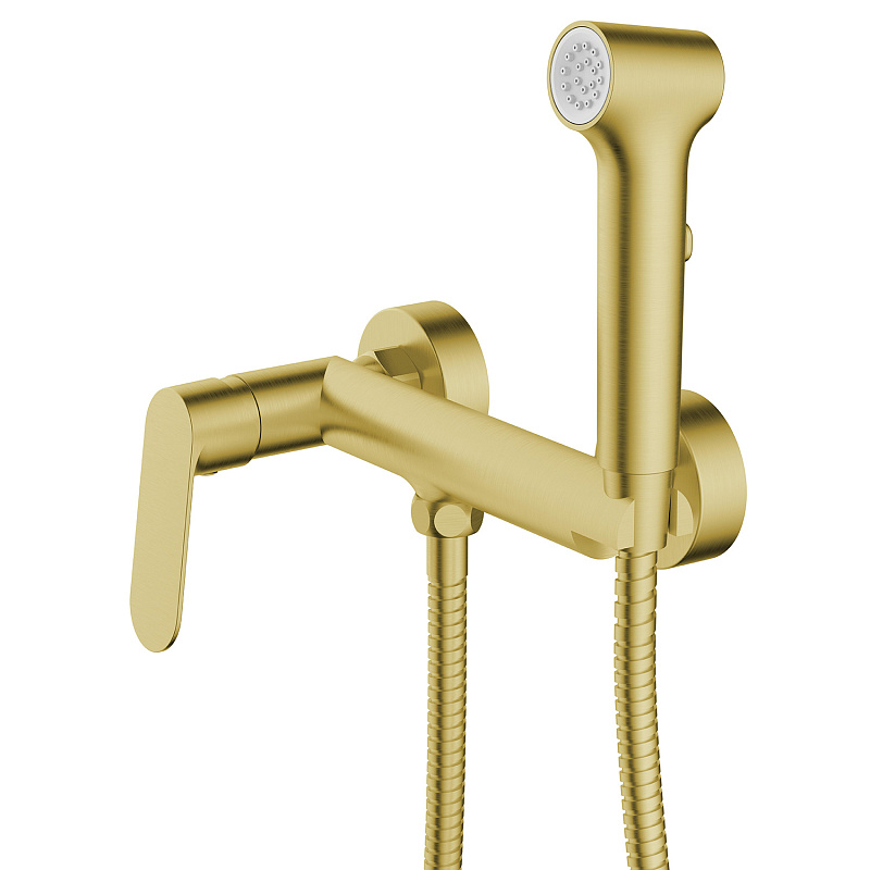 —Гигиенический душ Azario Alanti со смесителем, керамический картридж, однорычажный, шланг 150 см, золото матовое (AZ-K2532MG)
