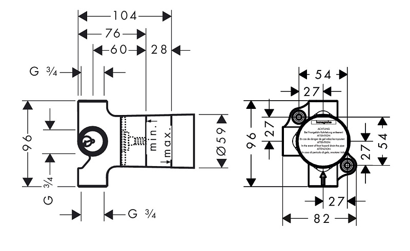 —Скрытая часть запорного/переключающего вентиля Hansgrohe Trio Universal, СМ, 3/4 (15981180)