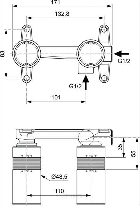 —Универсальный встраиваемый комплект для настенного смесителя для умывальника Ideal Standard (комплект №1) (A1313NU)