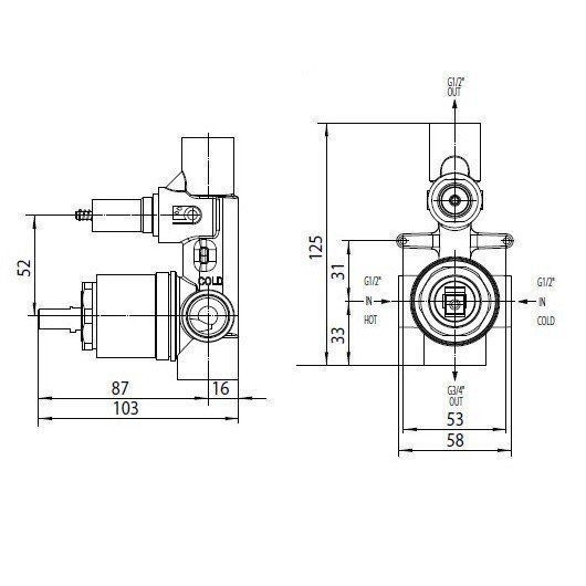 Комплект Bossini CUBE Смеситель для душа, встраиваемый, 2 выхода, внешняя часть, хром + Встраиваемая часть смесителя с девиатором 2 направления (Z00006.030+Z00005)
