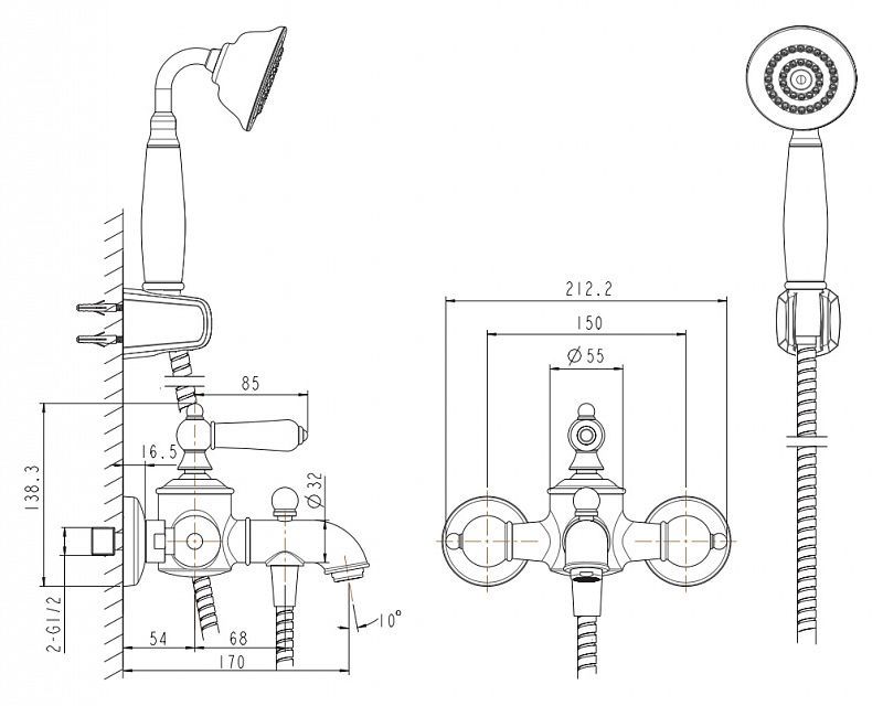 СМЕСИТЕЛЬ ДЛЯ ВАННЫ С КОРОТКИМ ИЗЛИВОМ И АКСЕССУАРАМИ