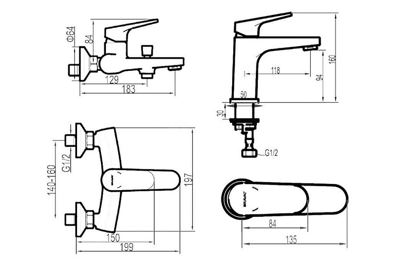 —Набор смесителей для ванны и умывальника Bravat Eler, хром (F191238CP-SET)