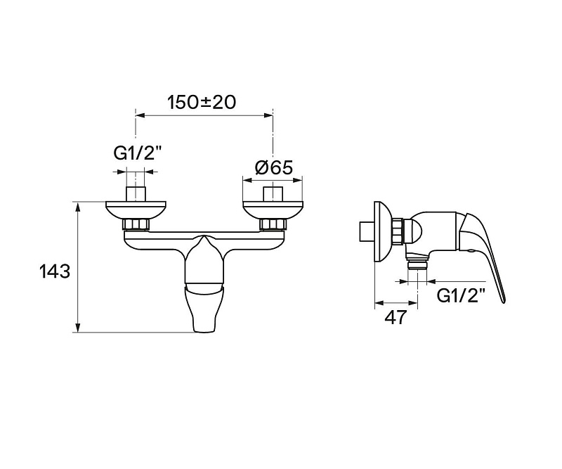 - подключение душевого шланга 1/2";