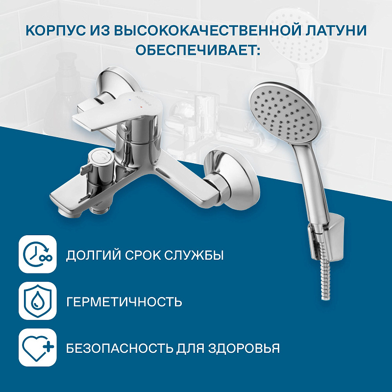 —Смеситель ванны Santek Венга с ручным душем, керамический картридж, хром (WH5A10003C001)
