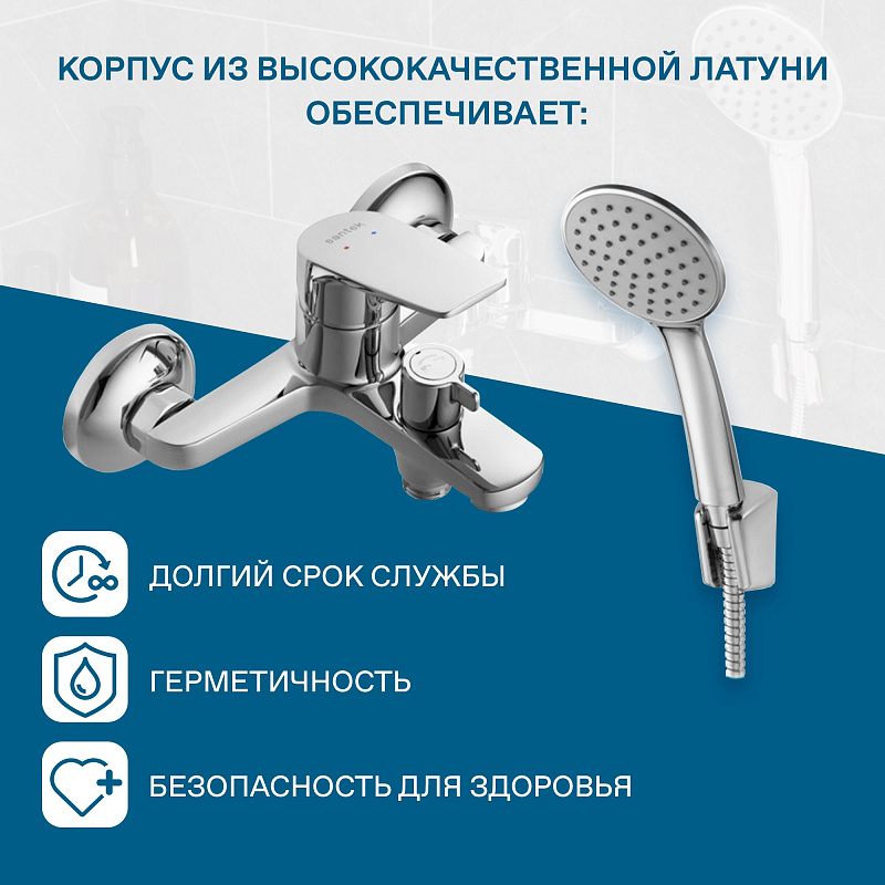 - поворортный керамический переключатель ванна/душ: надежное и удобное переключение режимов потока воды независимо от давления в системе водопровода;