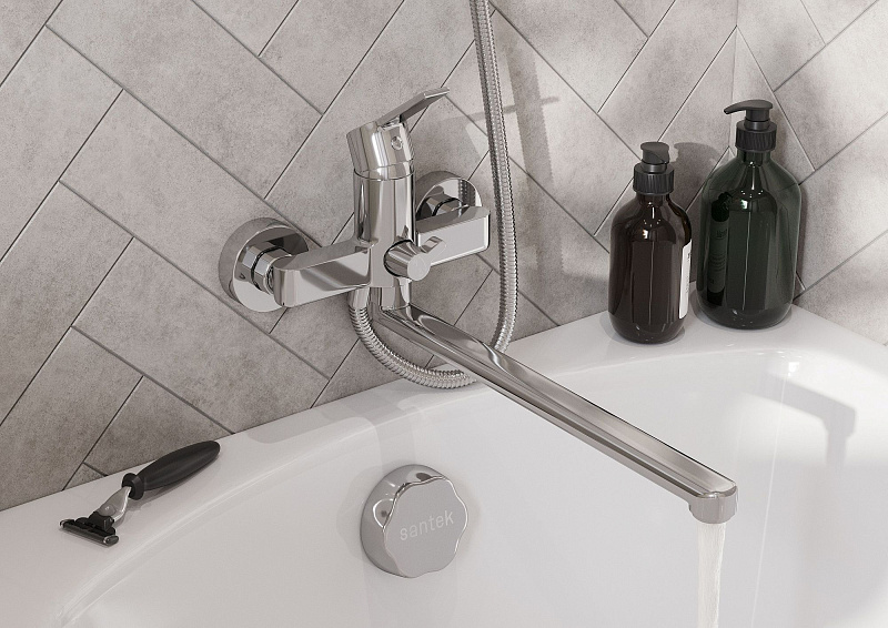 Santek Найра Смеситель однорычажный для ванны-душа с длинный поворотным изливом, хром
