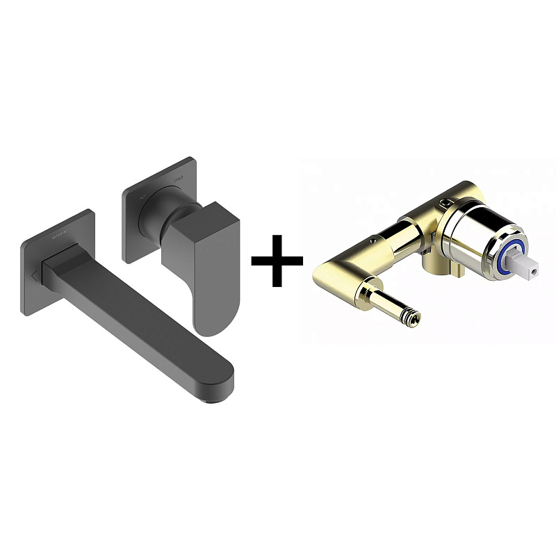 —Комплект Bossini TEO Смеситель для раковины, настенный, встраиваемый, с изливом 18.5 см, черный матовый + Встраиваемая часть однорычажного смесителя (Z00732.073+Z00801)