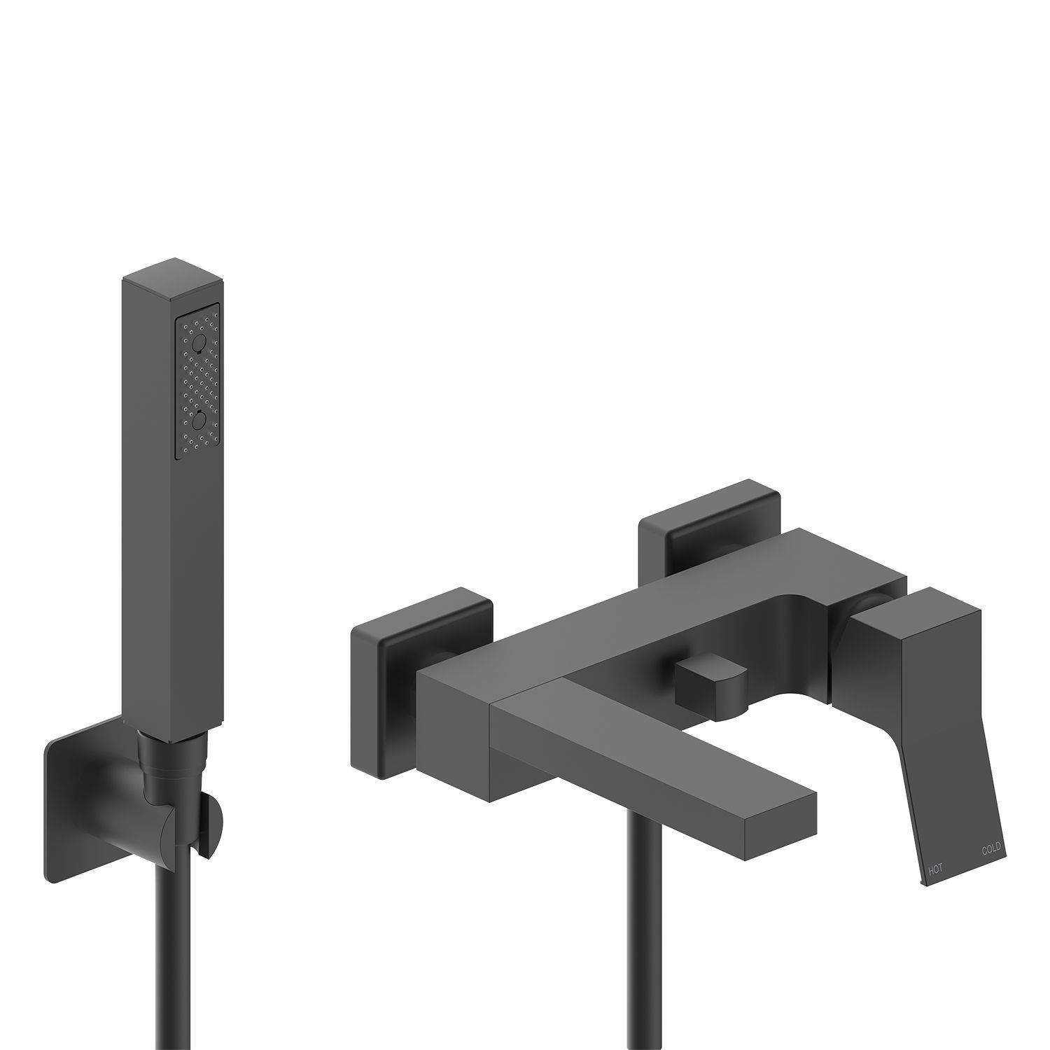 Настенный смеситель для ванны BOSSINI AKI Z00725.030 cо шлангом, держателем и лейкой, цвет Черный матовый: -Наружный настенный однорычажный смеситель для ванны AKI диаметром 188 мм -Размеры: 203 мм х 293 мм -Цвет: хром -Материал: латунь -С двухсторонним переключателем -Длина излива: 188 -Переключение на 2 выхода -Лейка Cube -Фиксированный держатель для душа и шланг из латуни дв. фальцевания -Тип монтажа: на стену -23,9 л/мин -Шланг 1250 мм -Форма: прямоугольная -Современный стиль.