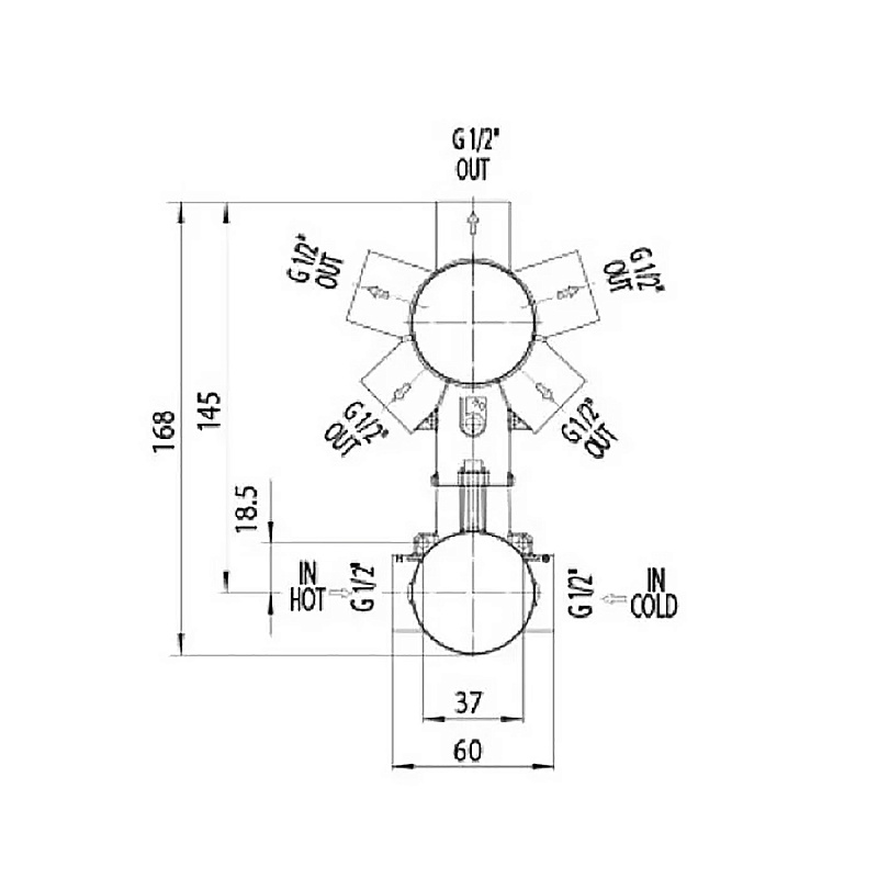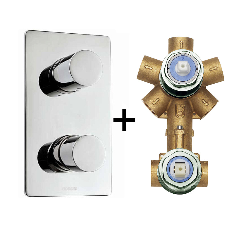 Комплект Bossini CUBE Смеситель для душа, встраиваемый, внешняя часть, хром + Универсальная встроенная часть для механического смесителя на 2-5 источников (Z00004.030+Z00130)