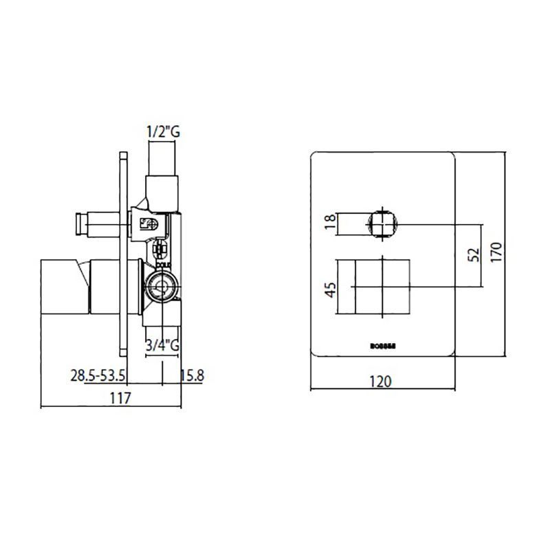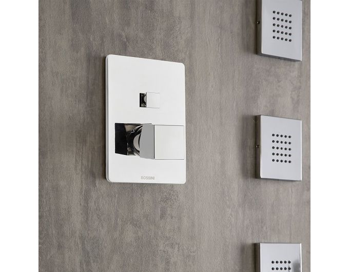 Комплект Bossini CUBE Смеситель для душа, встраиваемый, 2 выхода, внешняя часть, хром + Встраиваемая часть смесителя с девиатором 2 направления (Z00063.030+Z00005)