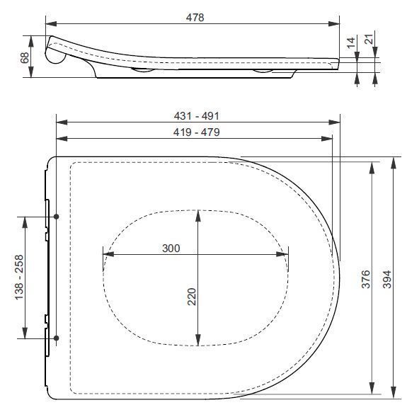 Подходит  унитаз подвесной, серия RP CW 552RY#XW Плавное закрытие.