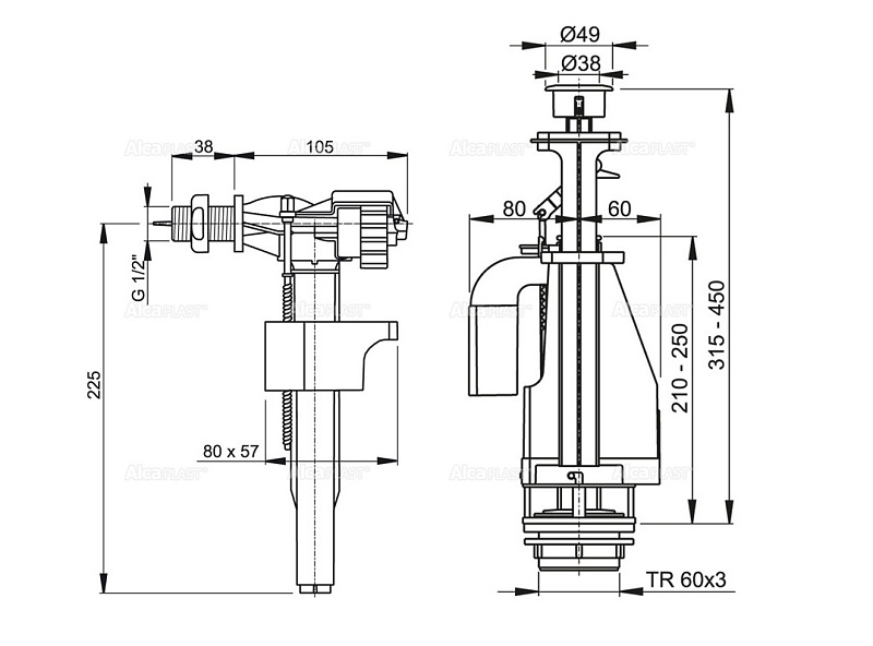 Сливная арматура Alca Plast боковой подвод, с двойной кнопкой, хром (SA08AS 1/2" CHROM)