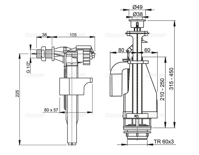 Сливная арматура Alcaplast с двойной кнопкой, впускной механизм А17, подключение 1/2" (SA08S 1/2" CHROM)