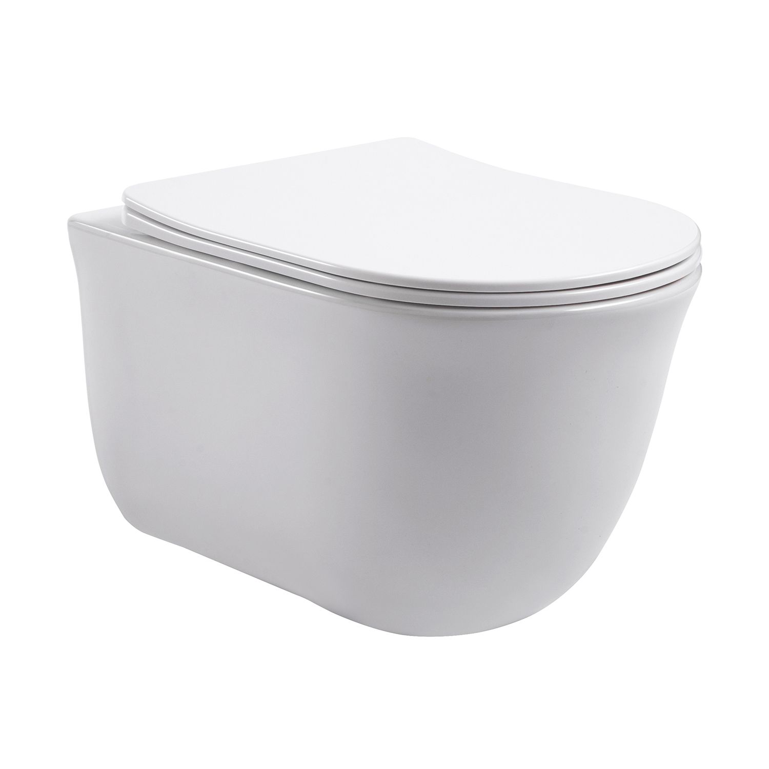 —Унитаз подвесной Azario Листа 490х365х340 безободковый, система смыва "Скрытое Торнадо", с быстросъемным сиденьем "Микролифт" (AZ-1177T)
