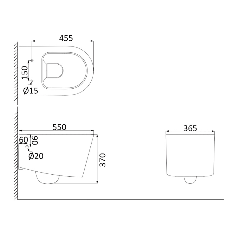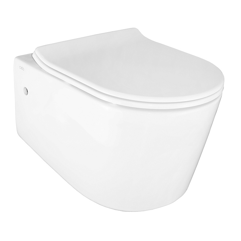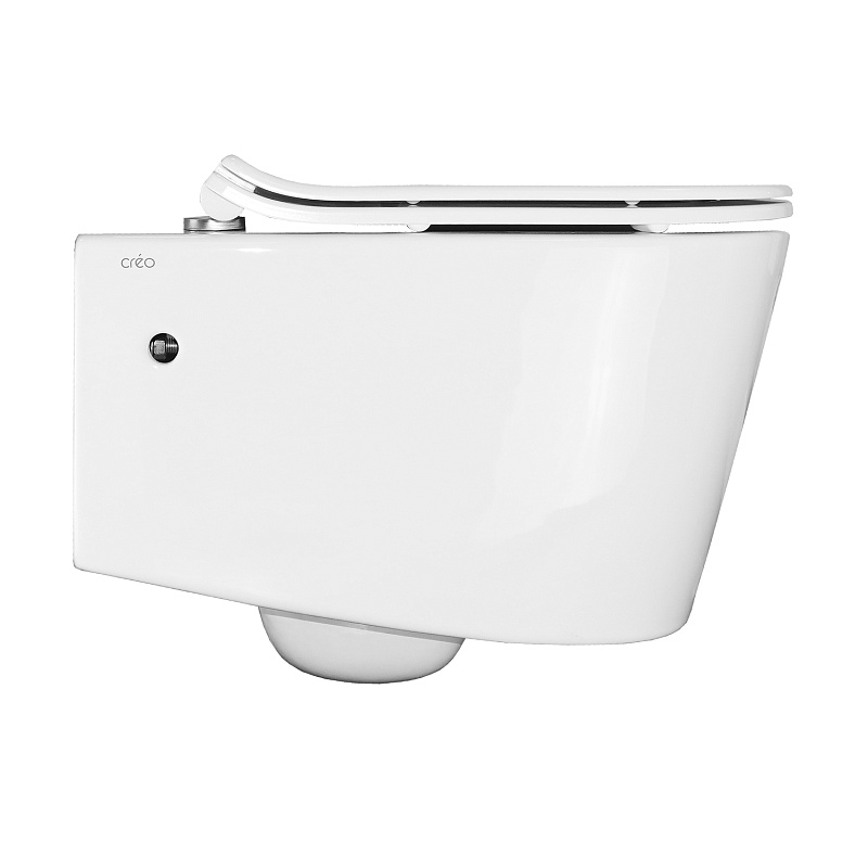 —Унитаз подвесной Creo Ceramique RENNES 550х365х370, безободковый с тонким сидением микролифт (RE1100R+RE1001T/AR1001T)