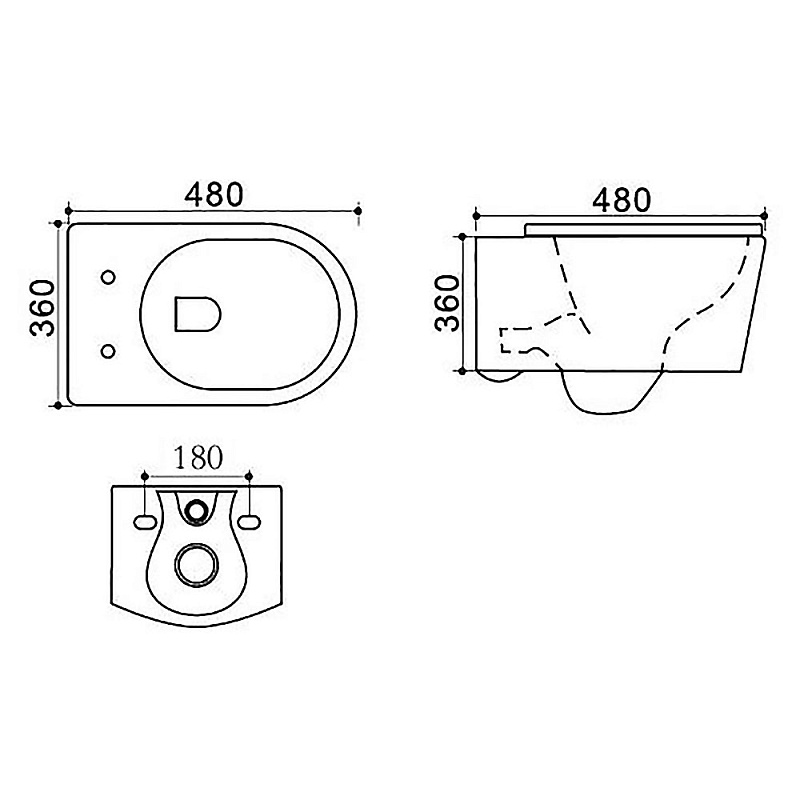 —Унитаз подвесной Azario Nova 360х480х360 безободковый, с ультратонким сиденьем микролифт (AZ-2217)