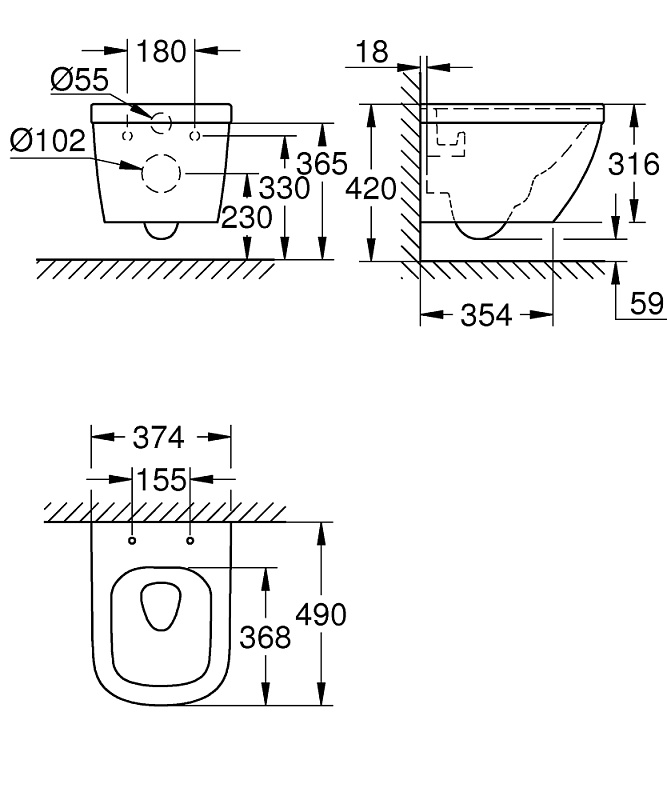 —Унитаз Grohe Euro Ceramic подвесной без сиденья (39206000)
