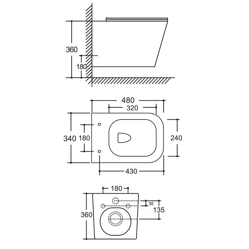 —Унитаз подвесной Azario Армония 340х480х360 безободковый, система смыва "Скрытое Торнадо", с быстросъемным сиденьем "Микролифт" (AZ-2403)